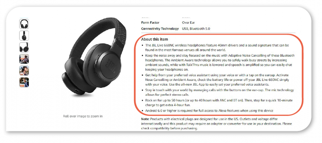 Information presented in the form of a list is easier to process. Bullet points should convince your customers why they should buy your product.
